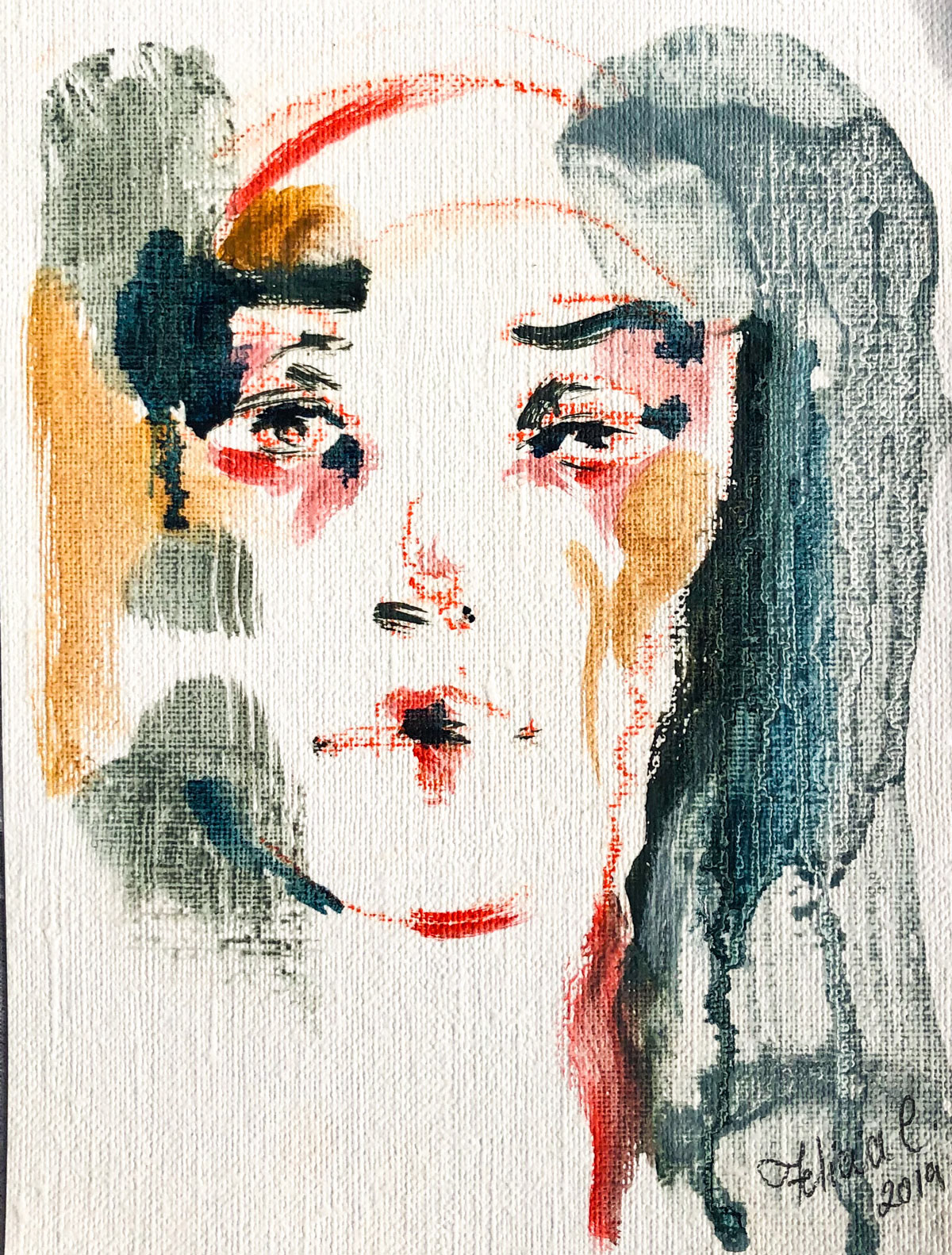 Oils and conte crayon on canvas paper, 4.5'' x 6''